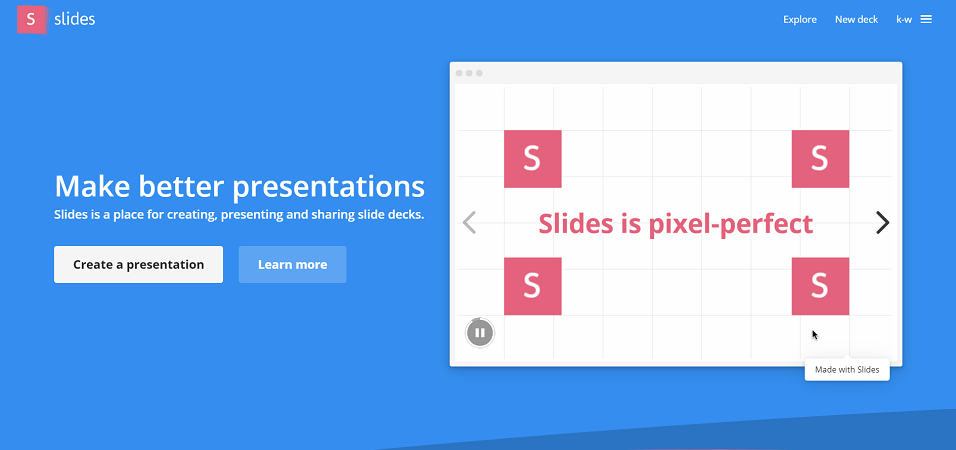 - Make better presentations Slides is a place for creating, presenting and sharing slide decks.